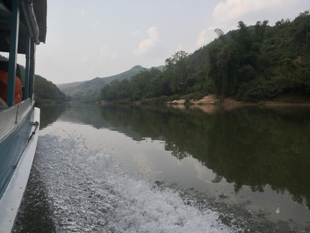 Eine weitere Bootsfahrt – ja, Boote sind definitiv unser bevorzugtes Reisemittel geworden – brachte uns bis kurz vor die vietnamesische Grenze. ca 5 Stunden hat es gedauert. Zwischenzeitlich hat unser Boot angelegt, weil ein sich im Bau befindender Staudamm die Weiterfahrt versperrte. Da an der Anlegestelle so gar keiner englisch verstand war erstmal abwarten angesagt, doch kurz darauf wurden wir zu einem kleinen Pritschenwagen gebracht, der uns in einer kurzen aber staubigen Fahrt hinter den Damm brachte, wo wir das nächste Boot vorfanden welches uns endlich auf bequemeren Sitzen bis nach Muang Khua bringen würde. Durch den Dammbau in der Region werden auch immer mehr Straßen in die Berghänge gegraben was man hier sehr stark sehen konnte. Trotzdem gibt es hier noch sehr ursprünglichen Regenwald, der mittlerweile auch durch die laotische Regierung geschützt wird.
