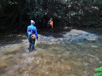 Und wieder hatten wir Glück - ausser uns hatte sich niemand für die Tour angemeldet und so machten wir uns alleine auf den Weg. Dabei waren unsere Guide und ein Träger, der die Ausrüstung und das Essen an Ort uns stelle schleppte und später auch lecker für uns grillte. Nach ca. 30min Fahrzeit, waren wir am Ausgangspunkt des Wanderwegs angekommen.