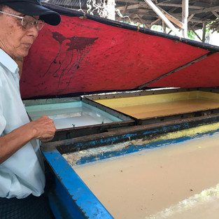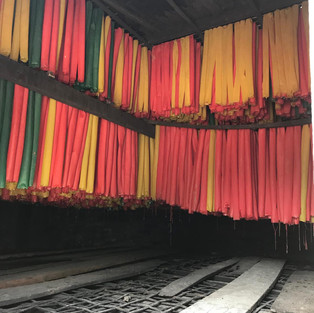 Zum Abschluss des Ausfluges haben wir eine Weberei besucht. Das war mit Sicherheit das faszinierendste Handwerk des Tages. Die Frauen müssen mehrere Monate in eine Ausbildung gehen, um die "Longyis" die typischen burmesischen Röcke weben zu können. Die Bezahlung hängt von der Komplexität der Muster und Handfertigkeit der Frauen ab.
