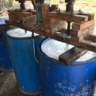 Danach hat uns Anthony mit in eine Gummiband-Manufaktur genommen. Wir haben Schritt für Schritt gesehen, wie aus dem Rohmaterial des Kautschuk-Baumes kleine Gummies entstanden sind. Für umgerechnet zwischen 2-3 Euro am Tag, müssen die Frauen hier ganz schön hart arbeiten.