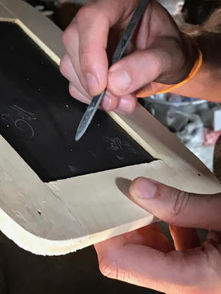 Beim ersten Stopp liefen wir durch ein kleines Dörfchen und schauten uns an, wie Schiefertafeln hergestellt werden, die heute noch in ländlicheren Gegenden Myanmars in Schulen zum Einsatz kommen. In den Städten, so Anthony, würde man natürlich schon in Schreibhefte schreiben.