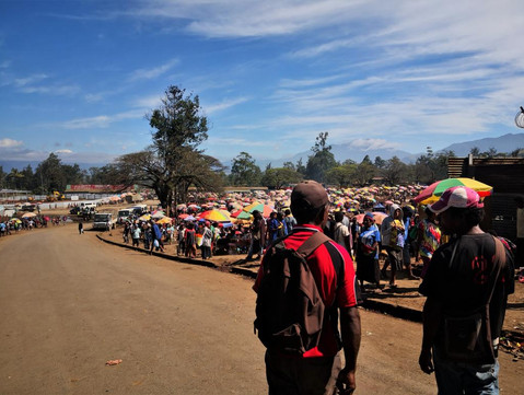Wir machten eine riesen Runde und kamen auch schon mal am Gelände vorbei, wo das Goroka Festival stattfinden sollte. Hier war man noch in den Vorbereitungen und wir konnten uns anschauen, wie die Buden gebaut wurden, wo auf dem Festival Essen und Souvenirs verkauft werden sollten.