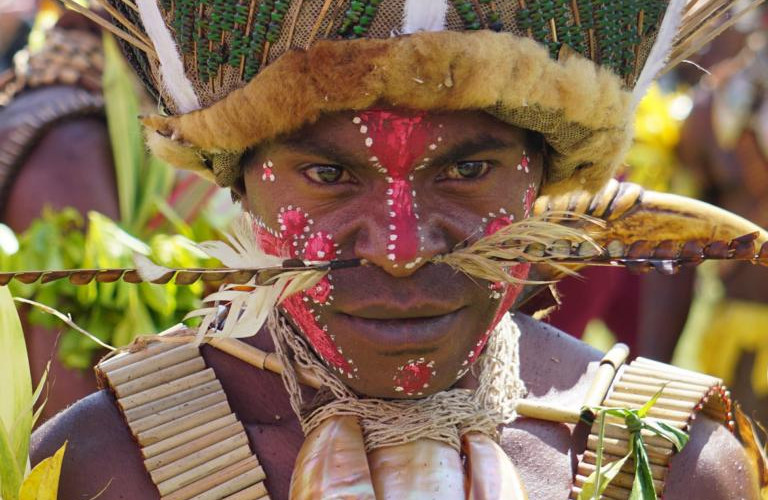 Manche der Stämme schmücken sich auch mit der immergrünen Blume, die sie vom Mount William holen, dem höchsten Berg Papua Neuguineas.