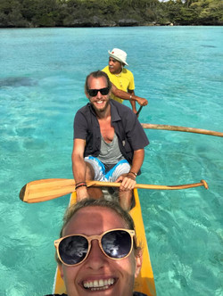 Danach ging es weiter in den Norden mit Halt am Luengoni Strand, wo wir überraschenderweise auf Annettes Mann trafen, der mit ein paar anderen mit dem Ruderboot beim Training war und von der Unterkunft hierher gepaddelt war.