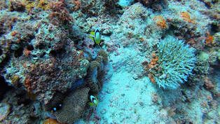 Nach einer kurzen Pause mit Kaffee, Tee und Keksen, ging es ein zweites Mal unter Wasser. Mit einem Kilo mehr pro Person in den Taschen, war das Abtauchen nun auch einfacher und neben Korallen konnten wir ein klitzekleines Seepferdchen, einen Schwarm Barrakudas und Riff Haie sehen.