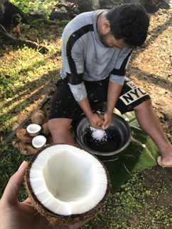 Gemeinsam durften wir uns auch ans Ausraspeln der Kokosnüsse machen, nachdem wir erstmal jede der Kokosnüsse leer getrunken haben. Hihi.