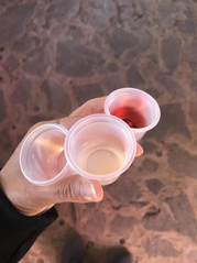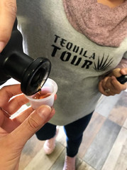 Nach der Destillerie ging es weiter in das Dörfchen Amatitan, wo "Day" aufgewachsen ist und wo der Tequila eigentlich herkommt, wie wir erfuhren. In einer süßen kleinen Bar hinterm Haus und am Eingang zu einer Höhle, wo es Quellwasser gibt, das man direkt trinken kann, gab es dann die nächsten Shots – traditionell aus einem Horn. Und weil wir nicht schon genug beschwipst waren, gleich noch ein Bier hinterher, das übrigens auch wahnsinnig lecker war. Und dann noch einen pinken Tequila, der zu Sabrinas Favorit erklärt wurde.