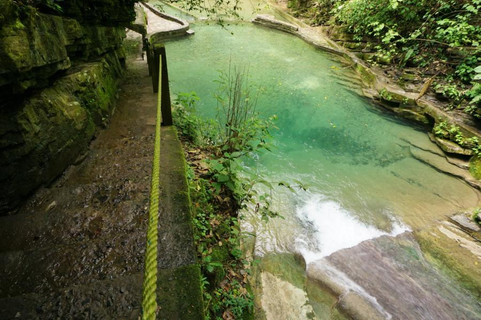 Am kommenden Morgen standen wir früh auf und just in dem Moment, als wir die Wohnung verlassen wollten, um irgendwo etwas zum Frühstück zu finden, kam Antonio mit zwei Tassen und einer Kanne Kaffee auf den Balkon. Als wir uns hinsetzten und den wirklich leckeren Kaffee schlürften, drehte Antonio noch eine Runde und tauchte erneut mit leckerem Gebäck auf. Wir konnten uns gar nicht mehr daran erinnern, dass das Frühstück inklusive war. Wir frühstückten gemeinsam mit ihm, quatschten noch ein bisschen und schauten in den Himmel. Die Wolken lockerten auf, es waren blaue Streifen zu erkennen und es versprach ein sonniger Tag zu werden, was auch Antonio meinte. Es war also Zeit aufzubrechen, wollten wir pünktlich da sein wenn es aufmacht. Eine kurze Taxifahrt später war es dann soweit. Wir standen am Eingang des Surrealistischen Garten „Las Pozas“ von Edward James. Multimilionär, Exzentriker, Kunstsammler – so lässt sich der Brite ganz gut in 3 Worten zusammenfassen. Von Salvador Dalí wurde er übrigens als „verrückter als alle Surrealisten zusammen“ bezeichnet. Um allerdings zu beschreiben, was er hier mitten in den Bergen erschaffen hat, fehlen uns die Worte, denn es hat uns echt umgehauen.