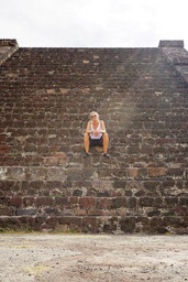 Nachdem wir also den Abstieg von der Sonnenpyramide geschafft hatten, schlenderten wir den langen Weg entlang, der links und rechts mit kleineren Pyramiden gesäumt war und machten erneut eine kleine Pause. Während Sabrina auf dem Dach sitzen blieb, schaffte Tom noch den Aufstieg auf die Mondpyramide.