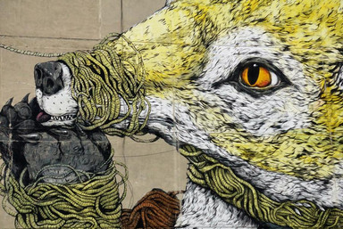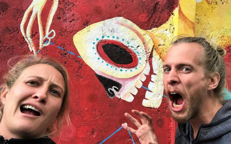Als wir das Postamt wieder verließen, entdeckte Sabrina auf der gegenüberliegenden Straßenseite noch mehr spannendes Streetart. Als wir dort ankamen, mussten wir uns etwas durch Straßenarbeiten schlängeln und mit ordentlich Wind dazu hat Sabrina erstmal ein fieses kleines Stückchen Dreck mit dem Auge eingefangen, das einfach nicht mehr raus wollte. Irgendwann machten wir uns auf zur nächsten Apotheke in der Nähe und erklärten mit ein paar Worten Spanisch, Windgeräuschen und Händefuchteln, was passiert war. Die Damen hinterm Schalter wollten uns zum Arzt schicken, wir beharrten auf einen Versuch mit ein paar Augentropfen. Auch das wollte anfangs nicht so recht funktionieren und auch nach dem 5. Spülgang blieb das fiese Körnchen im Auge kleben. Sabrina lies also erstmal das Auge zu und wir machten mit unserer Sightseeing Tour weiter und knipsten nochmal in Ruhe die tolle Streetart.